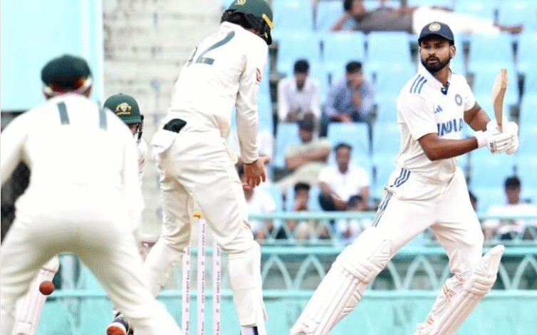 लखनऊ के इकाना स्टेडियम में ऑस्ट्रेलिया ‘ए’ और भारत ‘ए’ के बीच पहला अनौपचारिक टेस्ट मैच खेला जा रहा है। गुरुवार को भारत ने अपनी पहली पारी 4 विकेट पर 403 रन बनाकर समाप्त की। हालांकि टीम अभी भी 129 रन पीछे है। इससे पहले ऑस्ट्रेलिया ‘ए’ ने अपनी पहली पारी 532 रन बनाकर घोषित की थी।